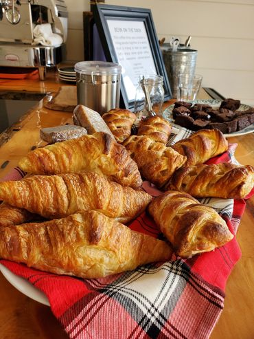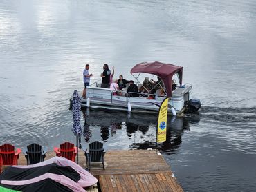 Enojoy your favourite drink from the deck overlooking Lake Cecebe. Check out our swag, with our stylish Bean on the Dock and Rockwynn Cott